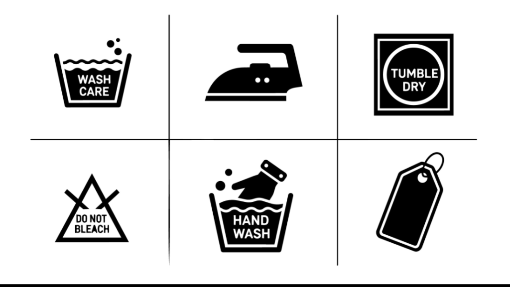 These labels provide exact instructions for washing, drying, and ironing.